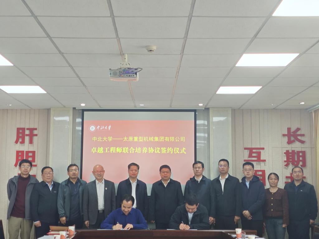 4月16日下午,我校与太原重型机械集团有限公司洽谈交流卓越工程师联合培养并签订两方协议,副校长杨风暴为太原重型机械集团有限公司副总经理吴建华颁发了山西省卓越工程师学院(中北大学)第一届理事会理事单位代表聘书。