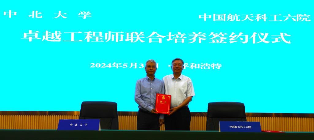 签约仪式上,双方法定授权代表人在与会人员的见证下签订了卓越工程师联合培养合作协议,赵贵哲为中国航天科工六院颁发了山西省卓越工程师学院(中北大学)第一届理事会理事单位代表聘书。