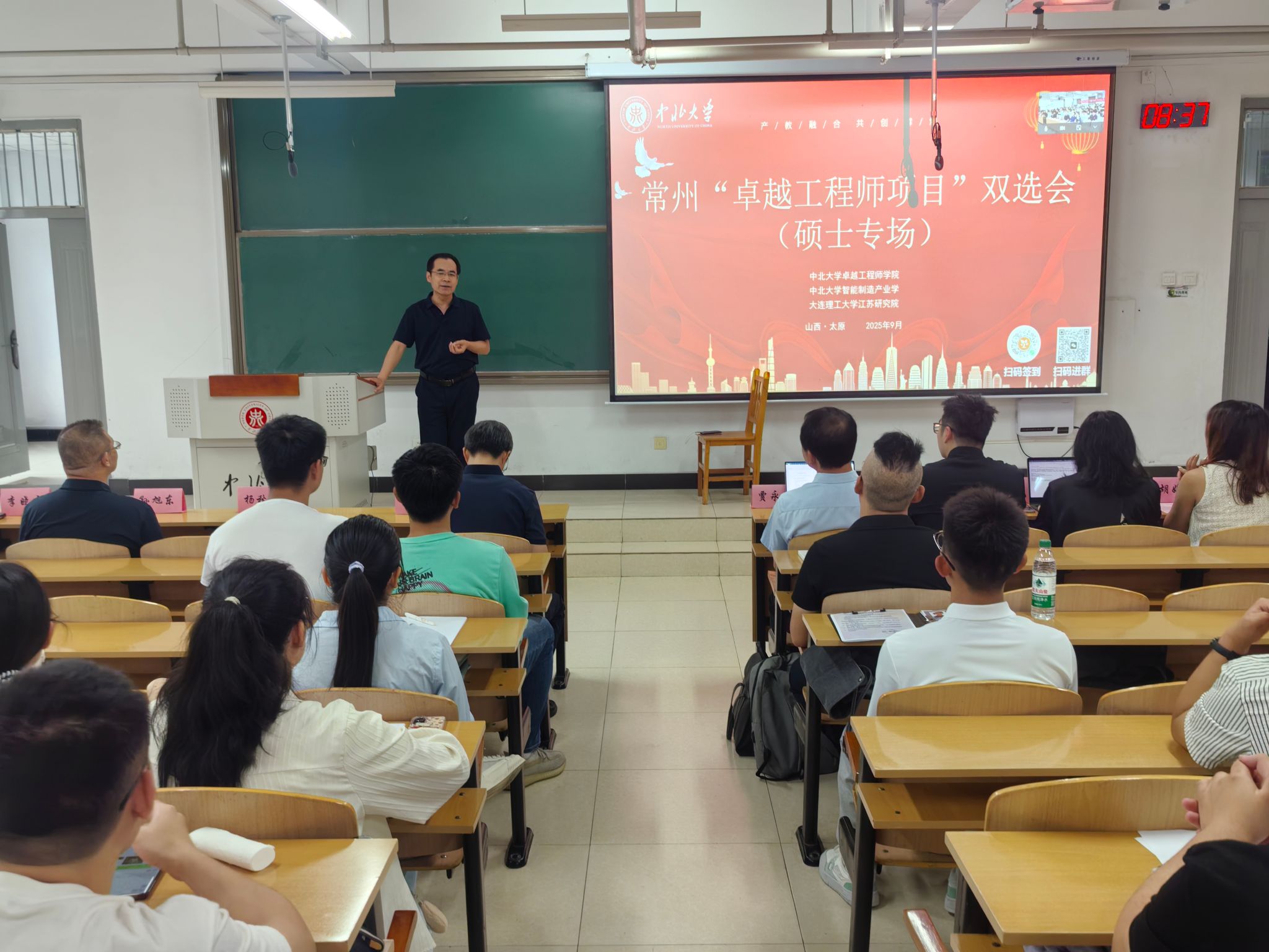 9月2日上午,卓越工程师学院联合机械工程学院、智能制造产业学院,在15109H教室举办常州卓越工程师项目双选会(硕士专场),聚焦长三角装备制造业高端人才需求,为专硕学生搭建高质量就业与校企协同育人桥梁。