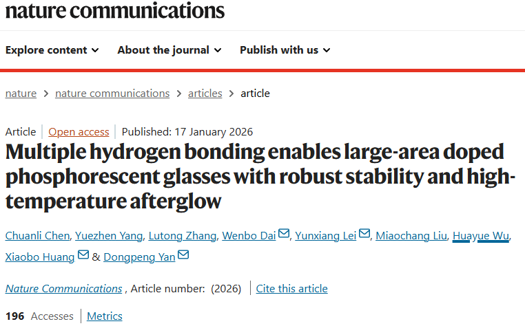 2026年1月17日,曹卫国教授指导的2025级资源与环境专业博士研究生杨月桢,在国际顶级综合性学术期刊《Nature Communications》发表重要研究成果。杨月桢依托校企协同产学研融合创新平台,聚焦聚集诱导发光材料领域前沿,采用分子动力学方法,揭示了无定型体系内多重无序氢键对三重激子非辐射衰减的抑制机理。